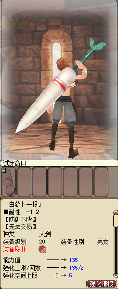 白萝卜一根(大剑):需要 1个“萝卜萝卜” 和 8个“兔子娃娃”。